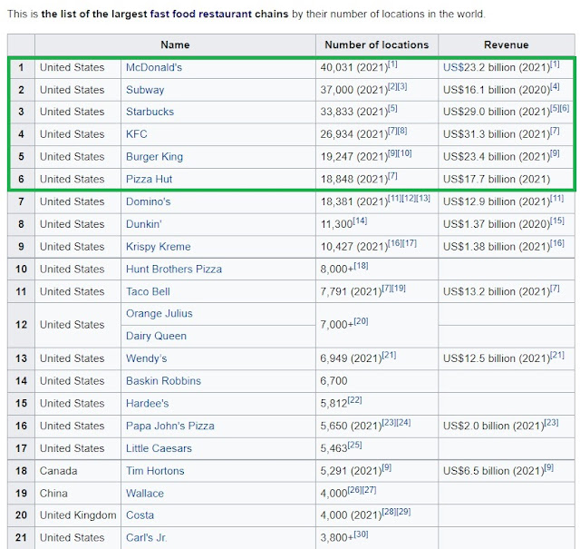 There exists a list of all QSR chains with more than 500 stores worldwide. The